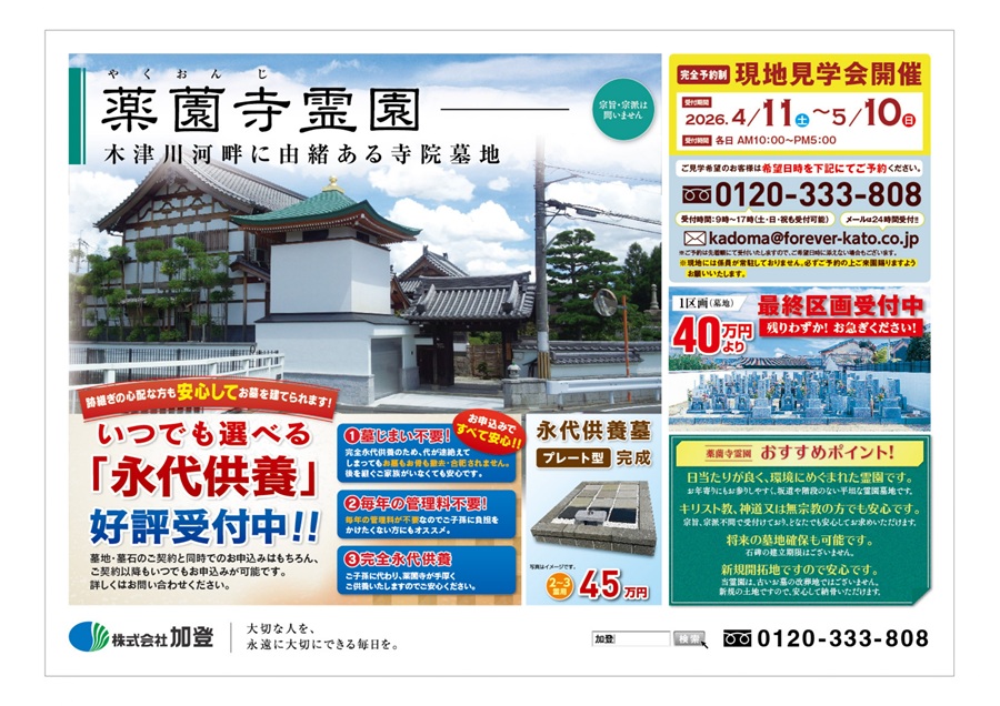 京都府八幡市【薬薗寺霊園】現地見学会を開催!