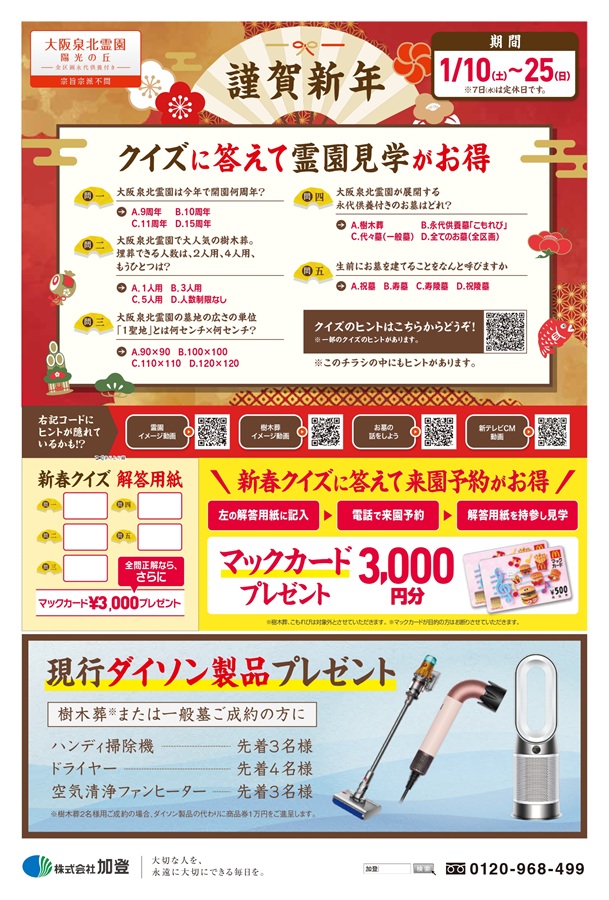 クイズに答えて霊園見学がお得!1/10(土)〜25(日)