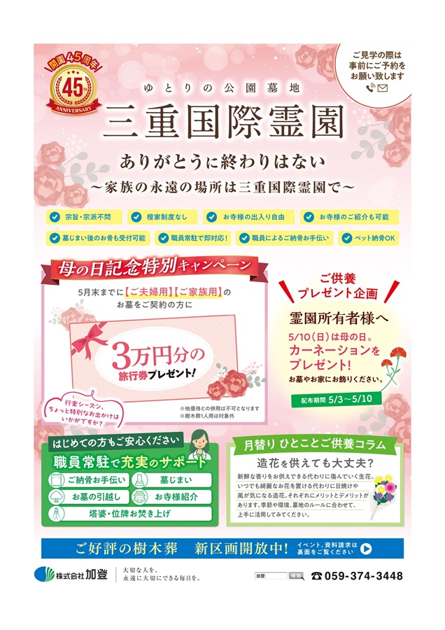 三重国際霊園(三重県鈴鹿市)最新折込チラシをアップしました。