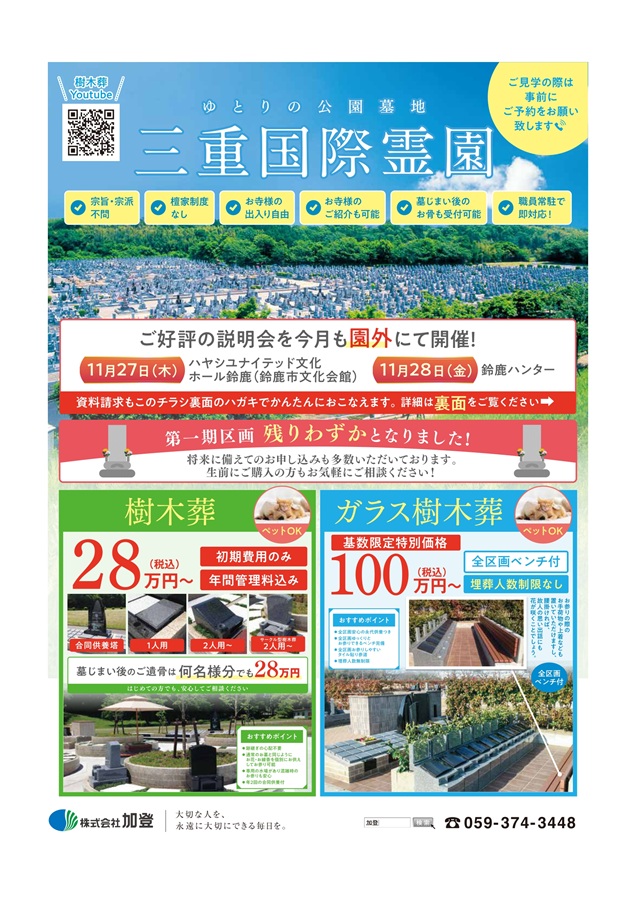 三重国際霊園(三重県鈴鹿市)最新折込チラシをアップしました。