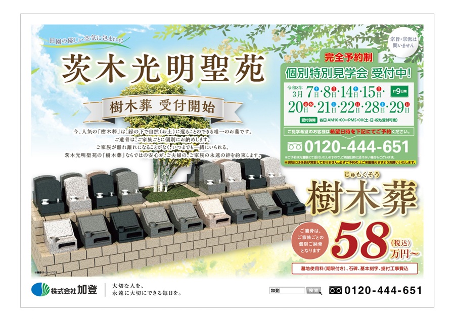 茨木市【茨木光明聖苑】樹木葬個別特別見学会を受付中!(完全予約制)