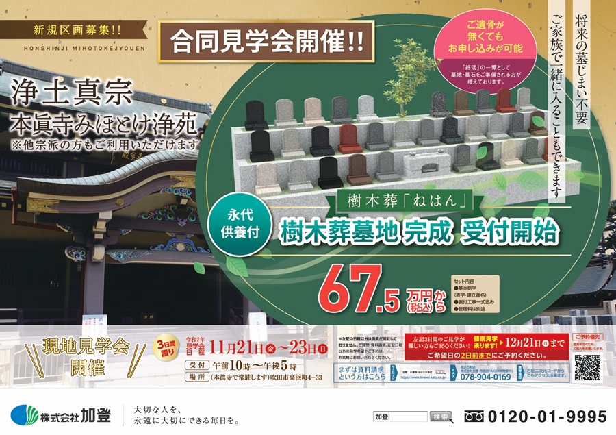 樹木葬墓地完成!11/21(金)〜23(日)合同見学会開催