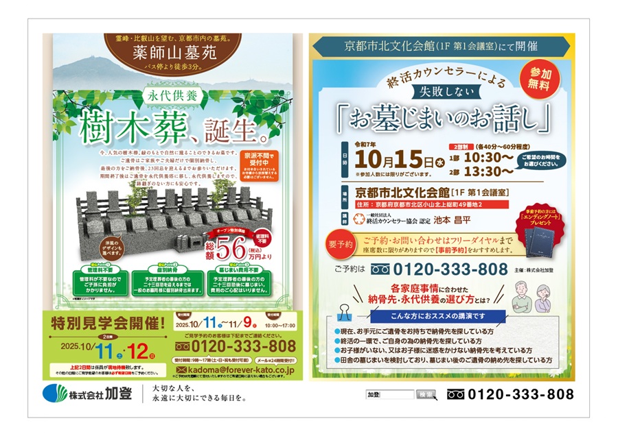 霊峰・比叡山を望む京都市内の墓苑【薬師山墓苑】の特別見学会を受付開始いたします!(受付期間:10/11〜11/9)
