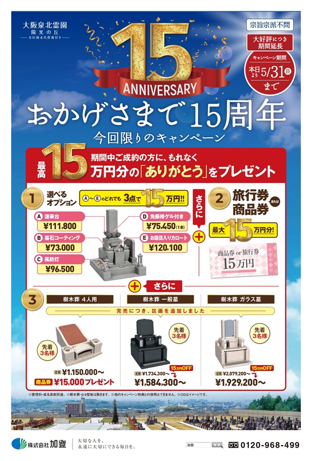 15周年キャンペーン実施!5/31(日)まで