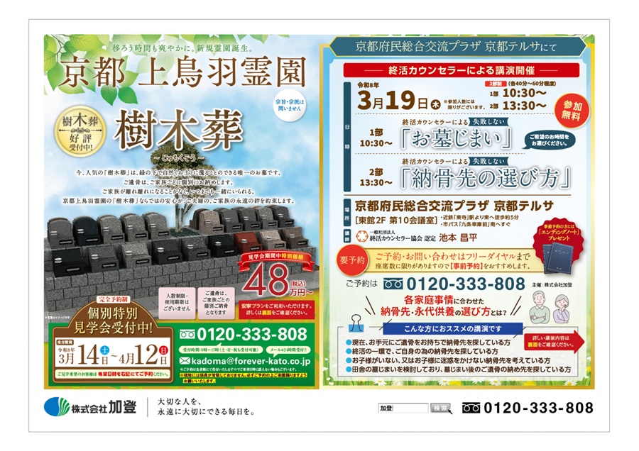 京都市南区【京都上鳥羽霊園】個別特別見学会を受付中!(完全予約制)