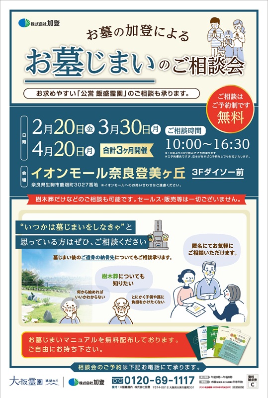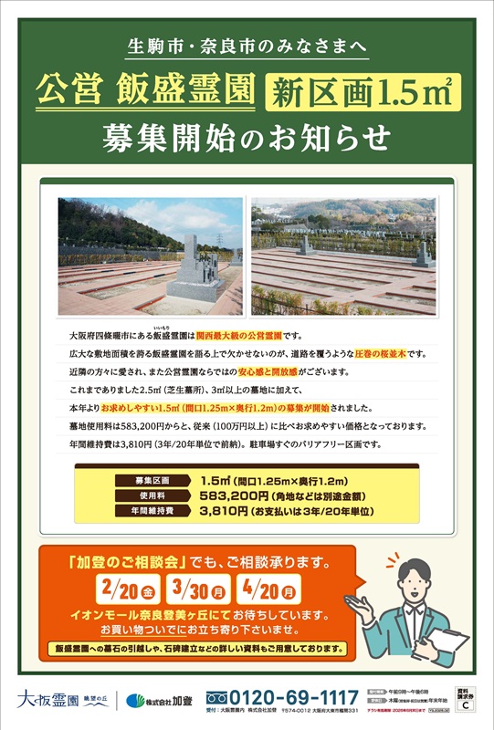 同時に、大阪の近隣4市の市民が申込できる飯盛霊園にて