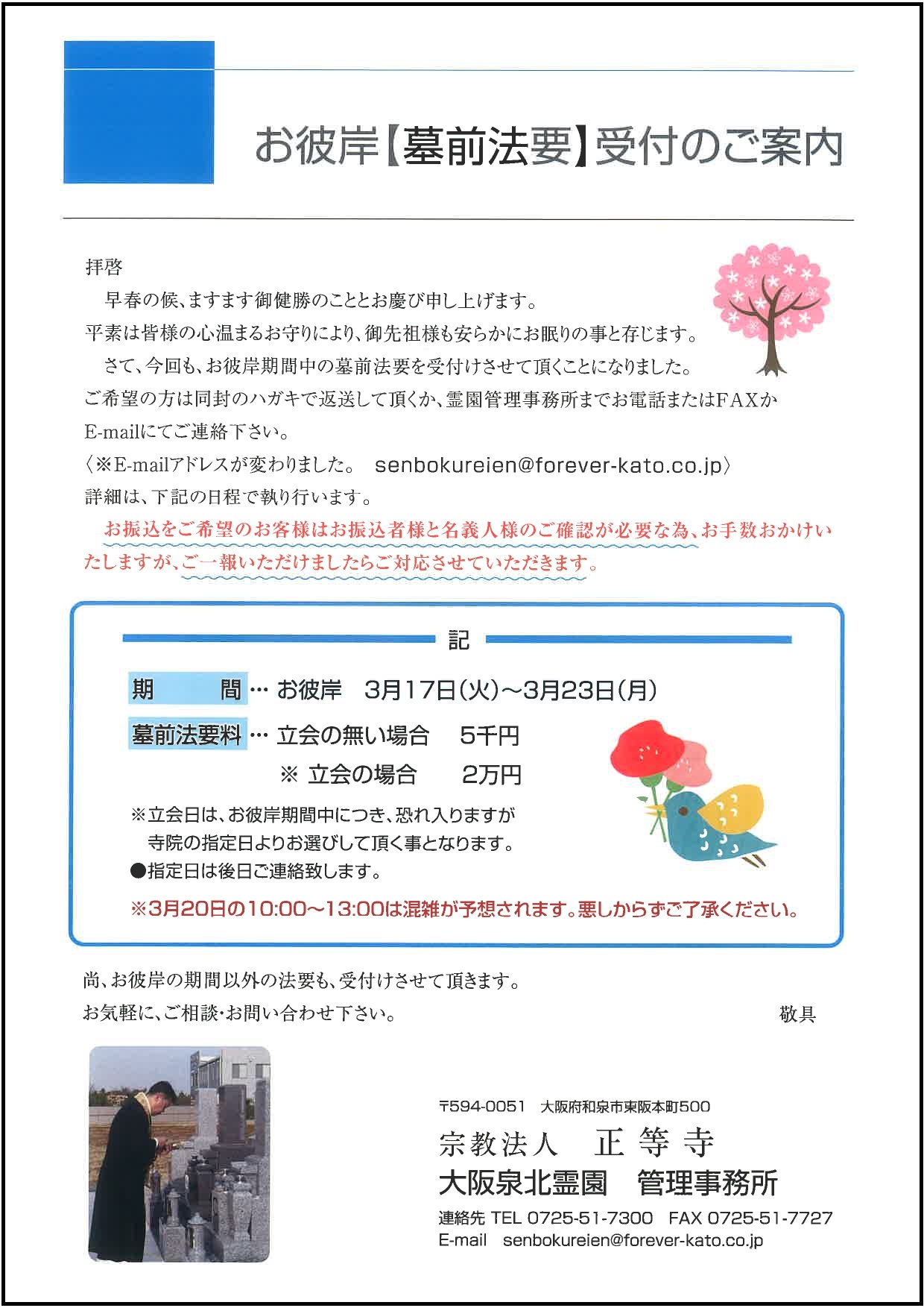 【2026年3月】春のお彼岸・墓前法要受付のご案内